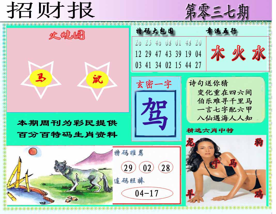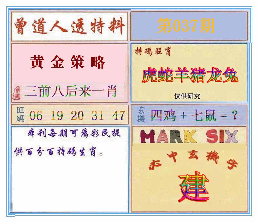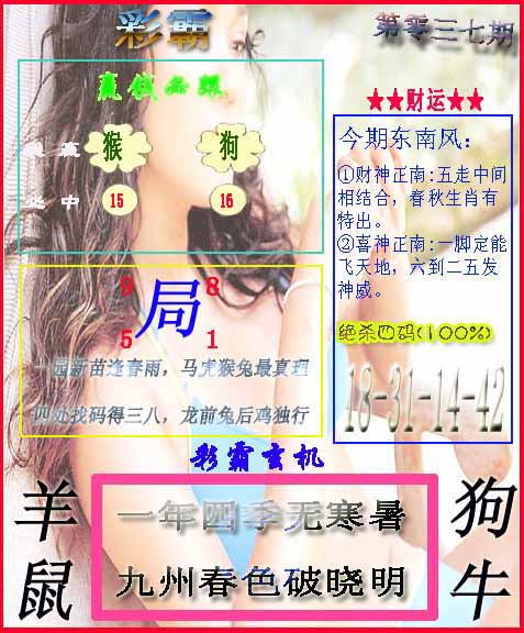 037期推荐六肖:<鸡狗马猴羊兔>内幕资料请大胆下注! | ||