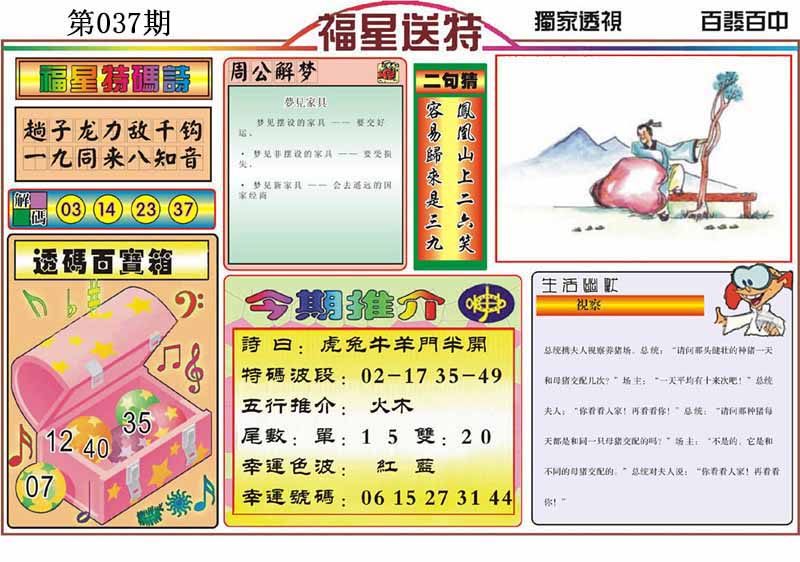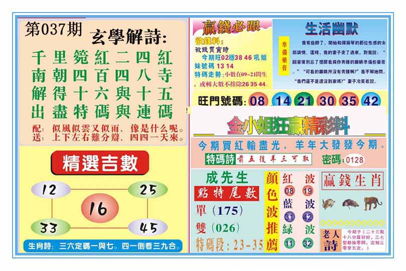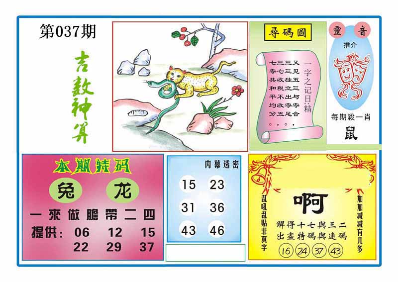 | 037期:《主攻:内幕规律平特肖:<蛇>下50万》! | ||