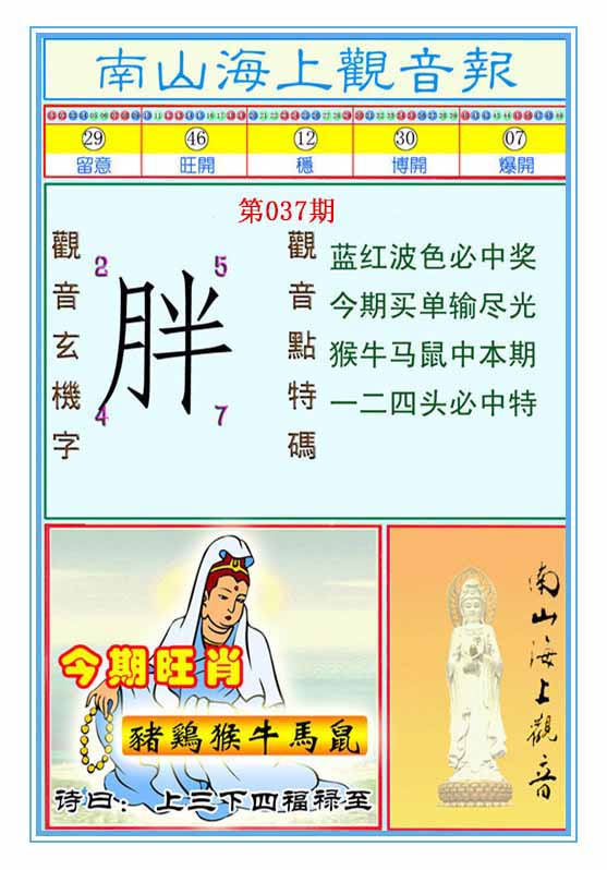 034期:【跑狗九肖】开蛇37 跑狗九肖:猴龙牛鼠猪狗蛇鸡虎 跑狗七肖:猴龙牛鼠猪狗蛇 跑狗五肖:猴龙牛鼠猪 跑狗三肖:猴龙牛 12码:25 27 33 02 49 46 01 16 30 48 08 05 | ||