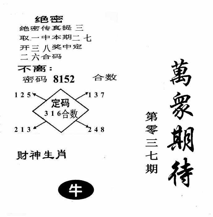 | 037期:神奇七尾【3 7 1 6 9 5 8】开:?00 |