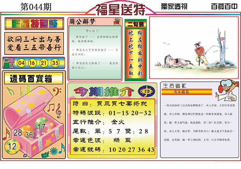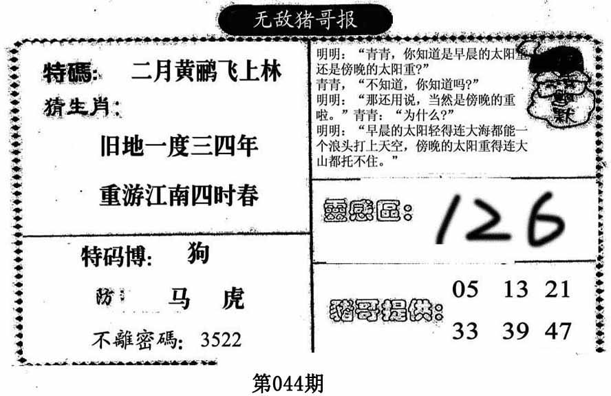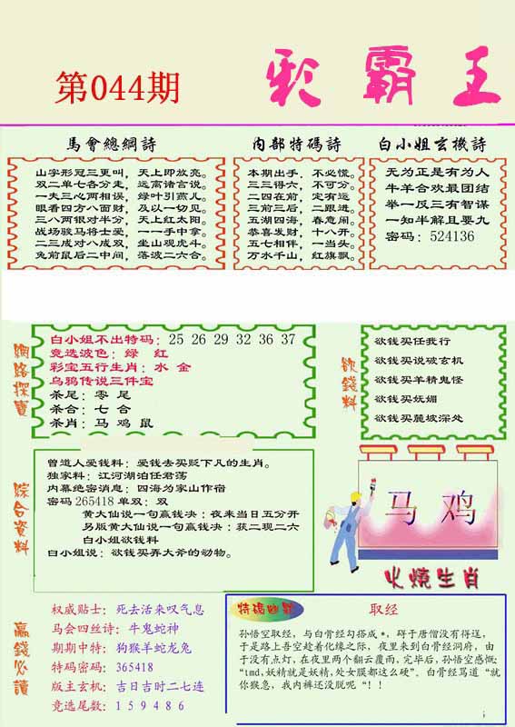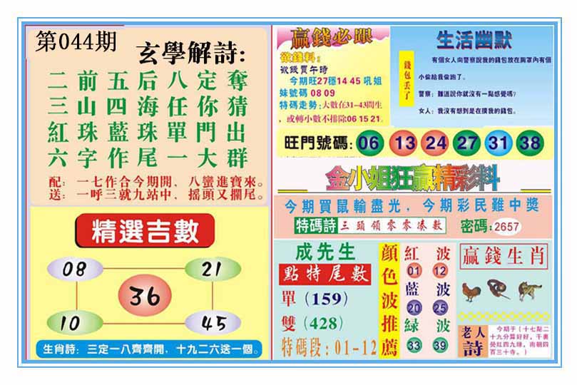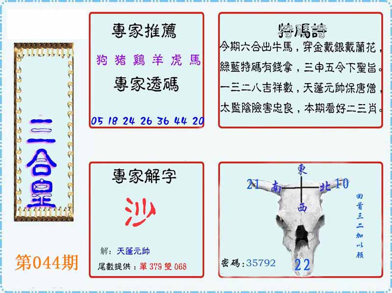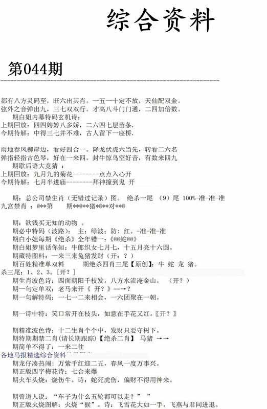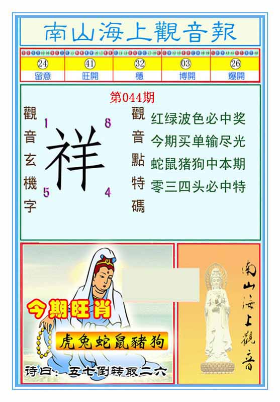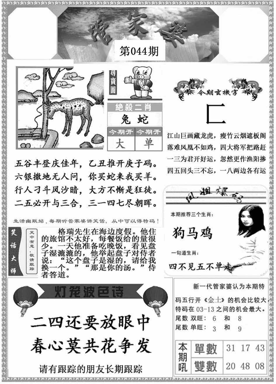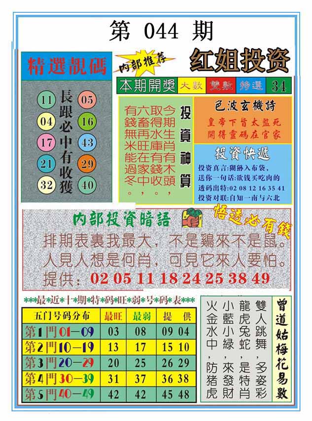 | 030期:精准五不中【26 04 44 48 11】羊23 |