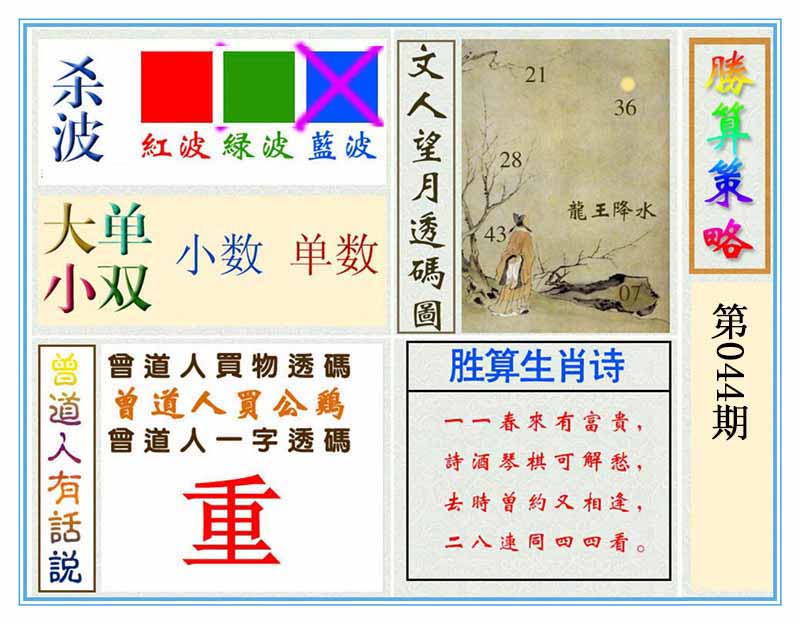 036期:【跑狗九肖】开鸡21 跑狗九肖:狗猪龙兔虎鼠牛猴蛇 跑狗七肖:狗猪龙兔虎鼠牛 跑狗五肖:狗猪龙兔虎 跑狗三肖:狗猪龙 12码:39 04 37 43 23 12 13 07 24 05 49 32 | ||