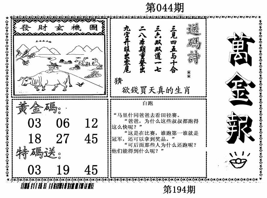 043期原创20码中特开:?00 31,46,06,18,45,35,38,10,23,48 12,17,09,44,11,13,49,43,28,34 |