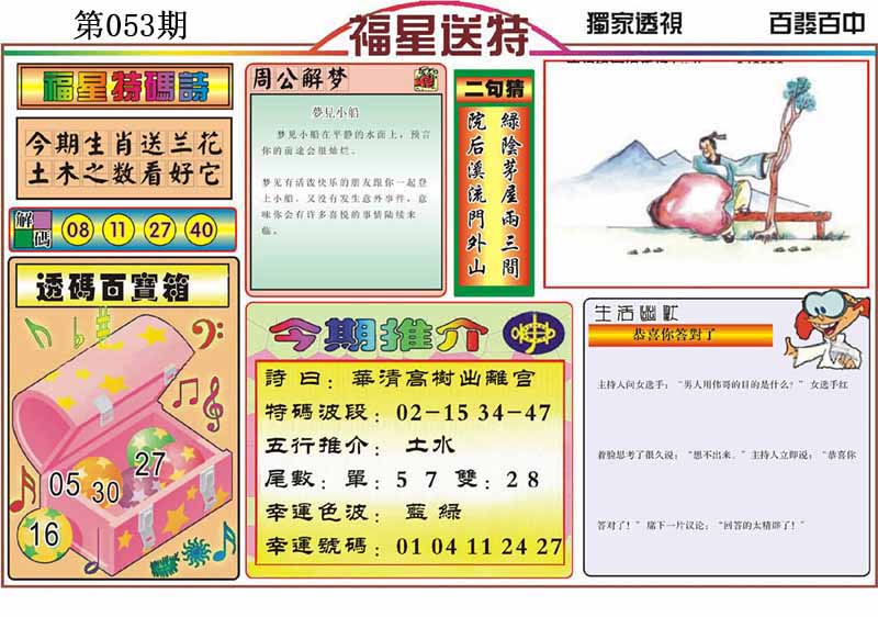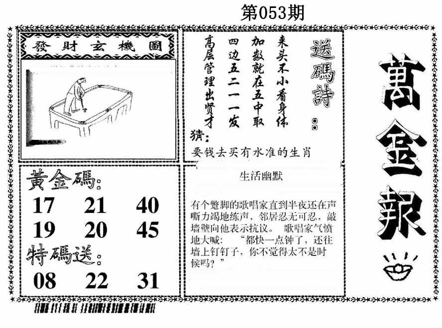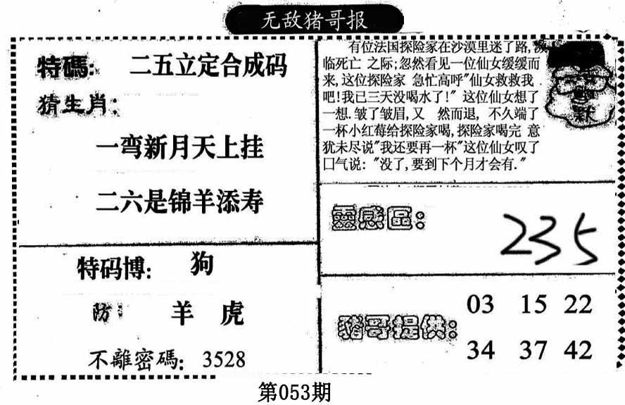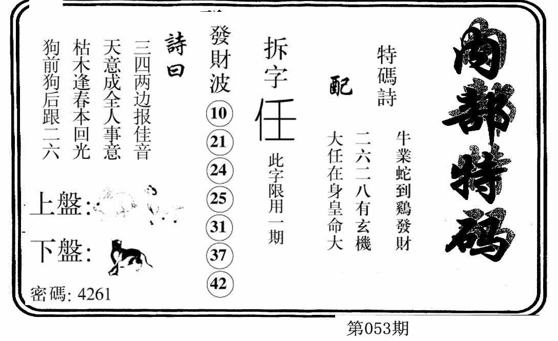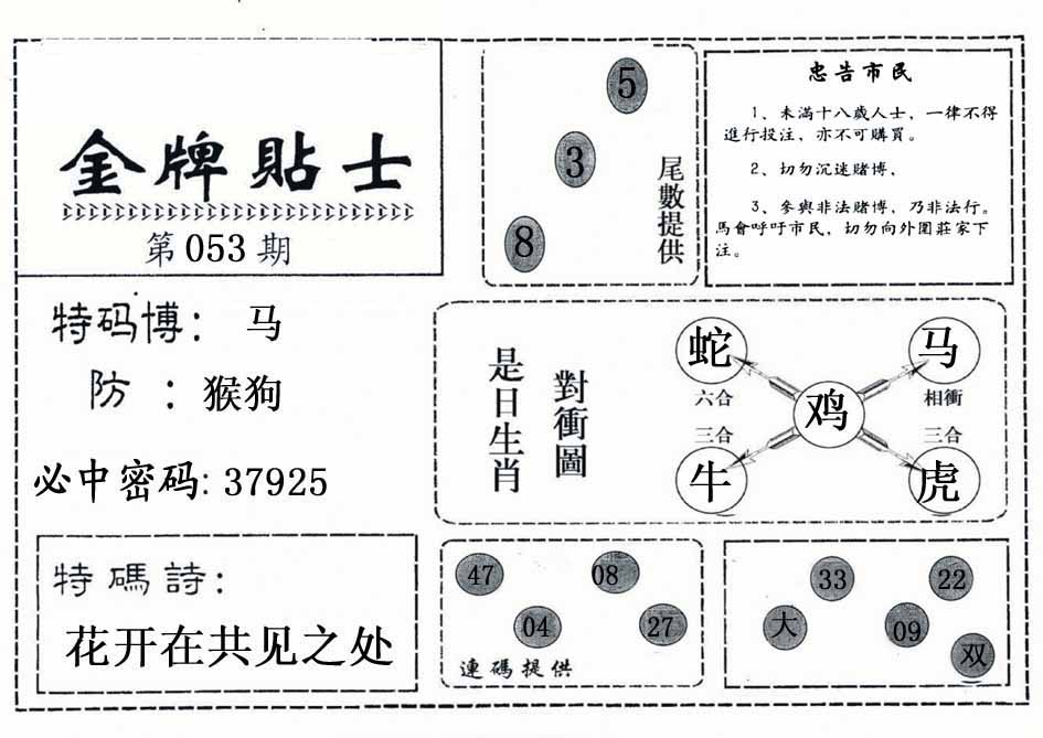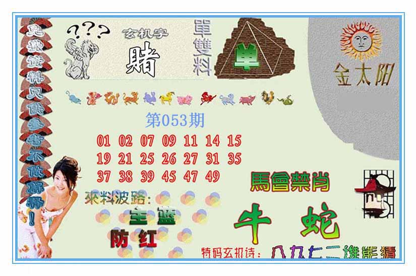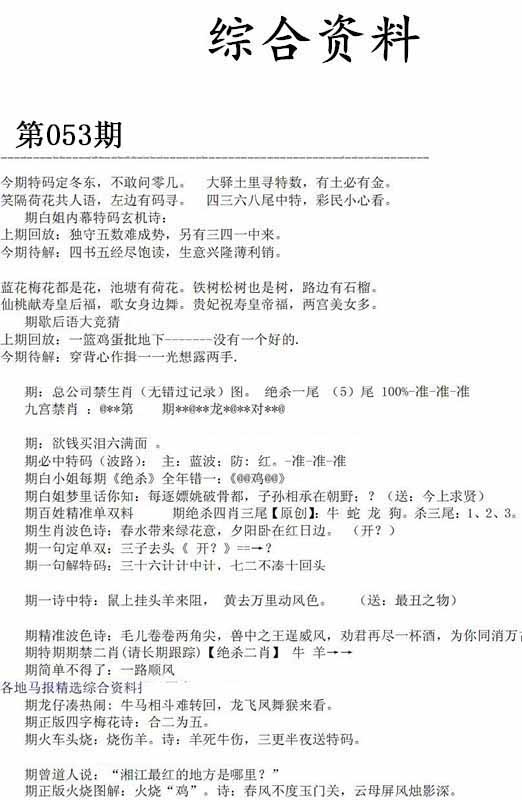 | 053期:《主攻:内幕规律平特肖:<马>下50万》! | ||