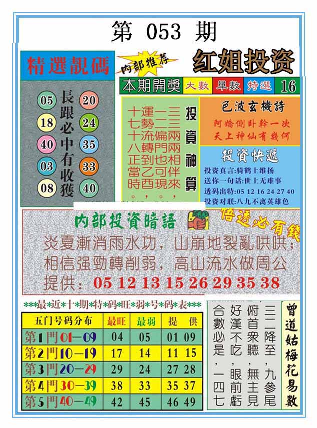 | 053期推荐五码:<03 28 06 20 01>大胆下注十万让你赚百万!