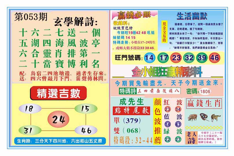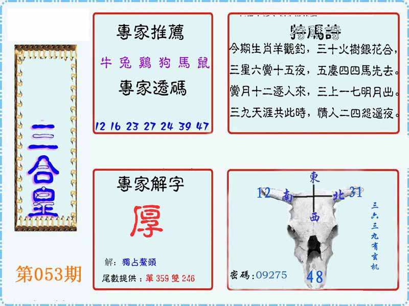 | 053期:(香港挂牌)平一肖【鼠】开:?00 |