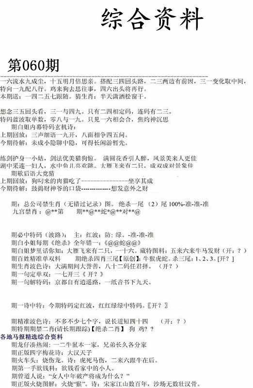 060期推荐六肖:<狗蛇羊虎鼠龙>内幕资料请大胆下注! | ||