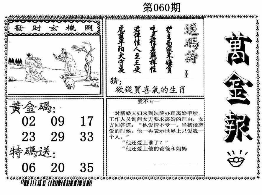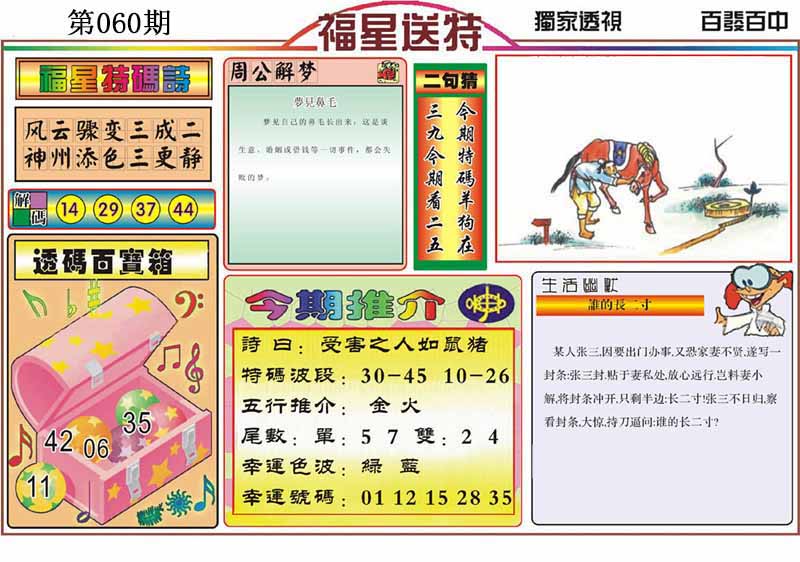 | 060期推荐五码:<07 25 35 31 23>大胆下注十万让你赚百万!