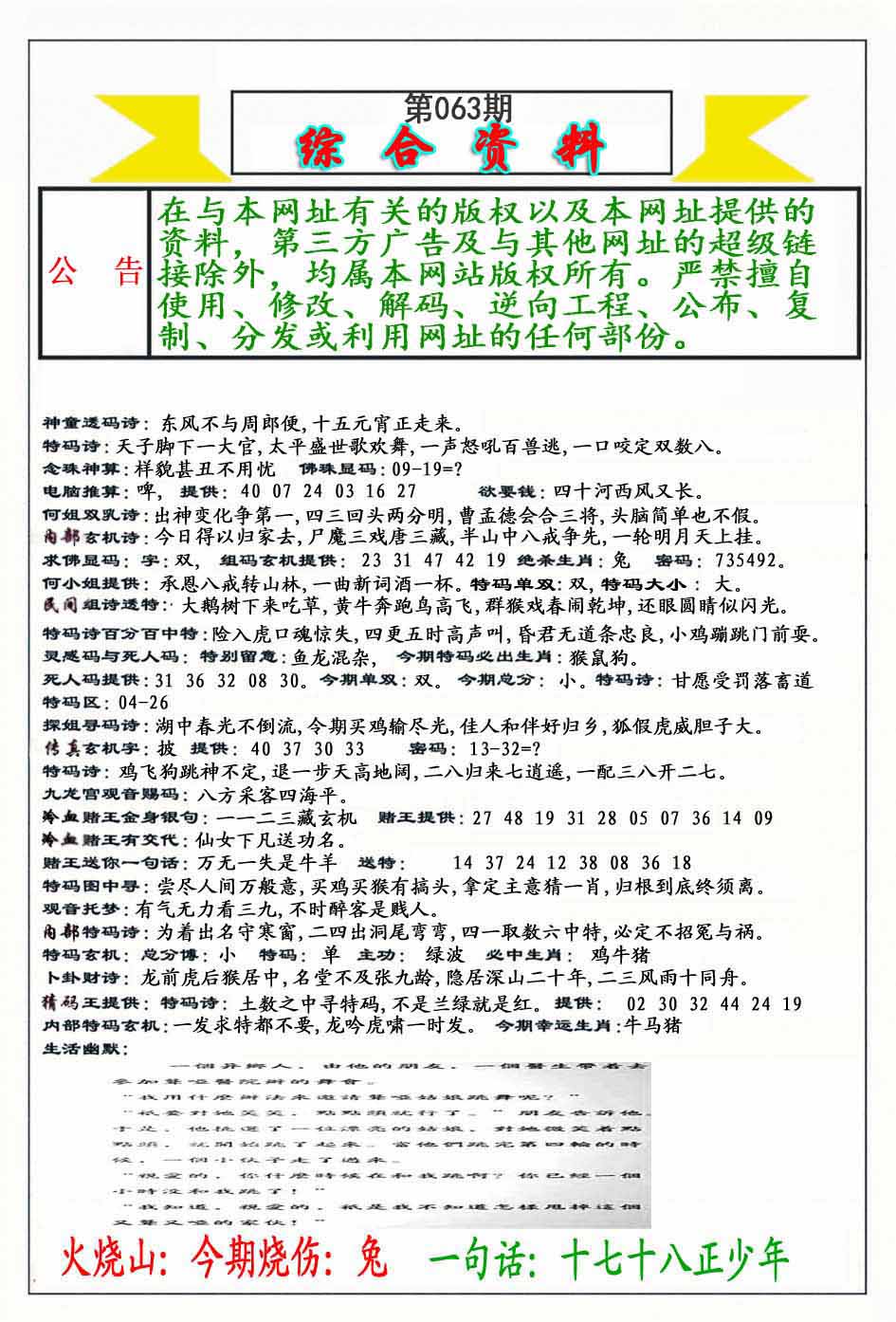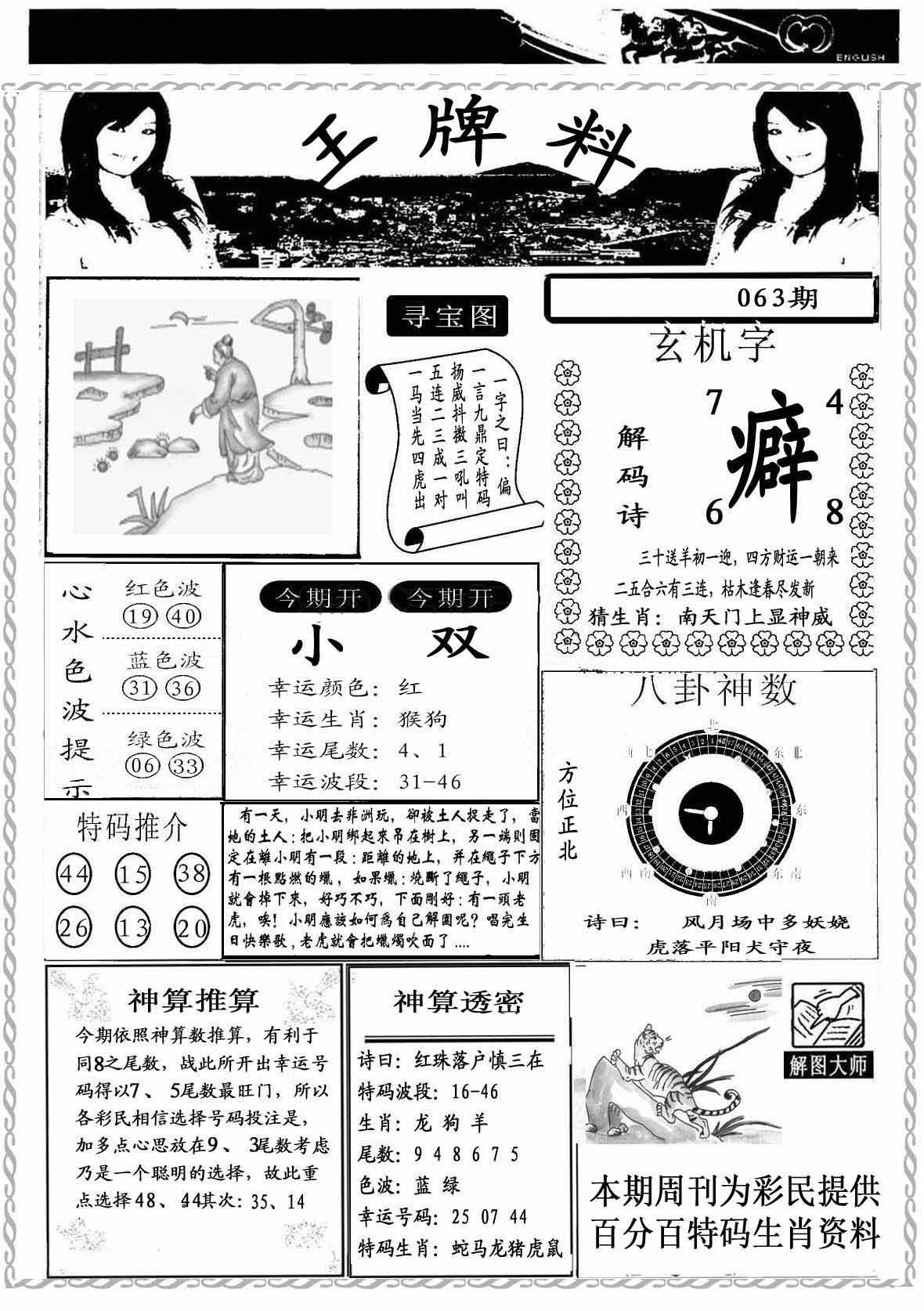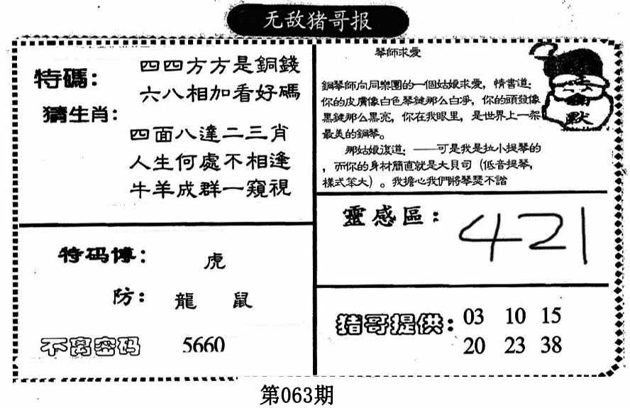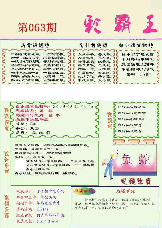 | 063期:《主攻:内幕规律平特肖:<蛇>下50万》! | ||