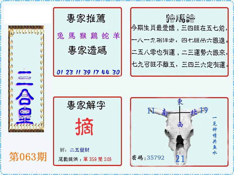 | 063期内部①肖①码:<蛇01->信心百分百包您中奖哦! | ||