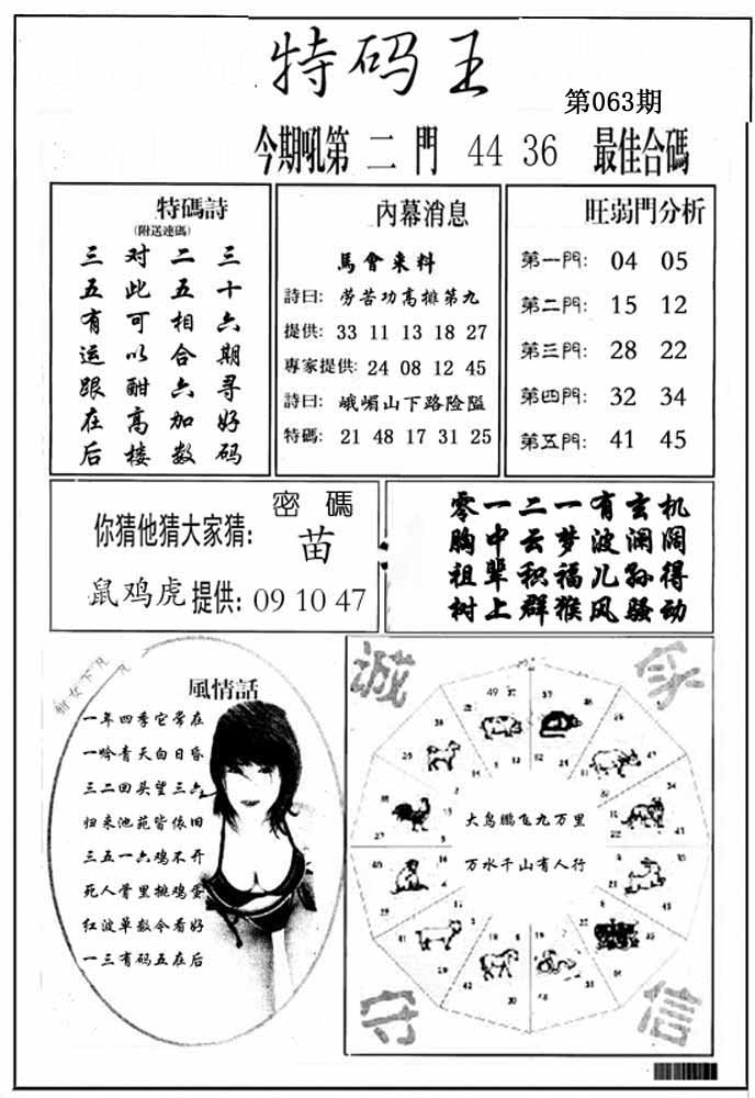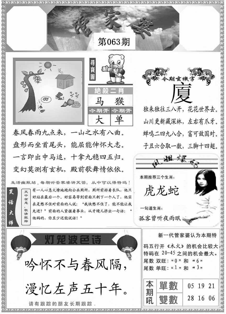 | 063期:(香港挂牌)平一肖【猪】开:?00 |