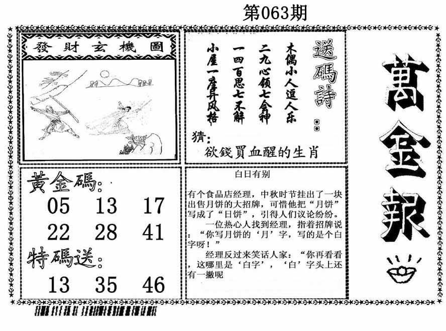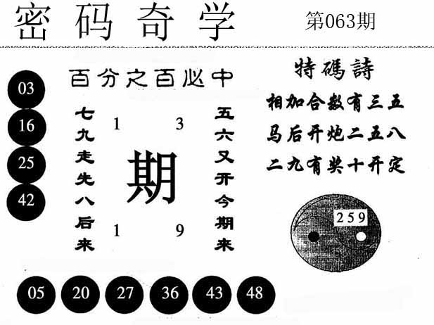 | 063期推荐五码:<08 30 48 46 13>大胆下注十万让你赚百万!
