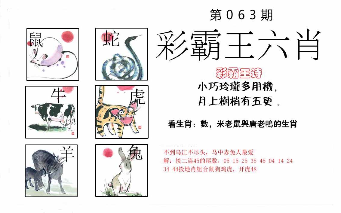 063期推荐六肖:<兔龙蛇马猪狗>内幕资料请大胆下注! | ||