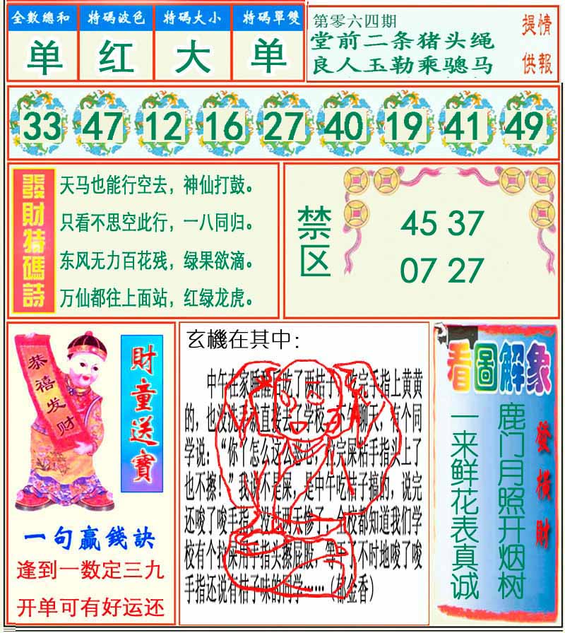 | 064期推荐五码:<24 28 47 37 31>大胆下注十万让你赚百万!