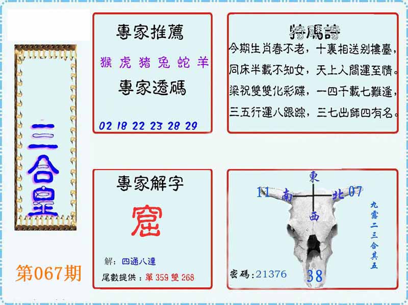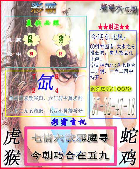 | 057期:神奇七尾【4 1 9 0 6 3 7】开:猪32 |