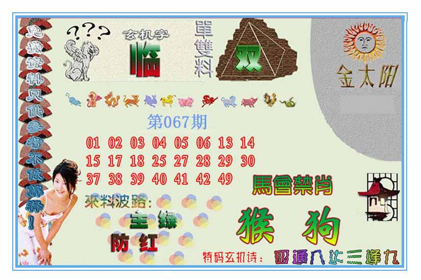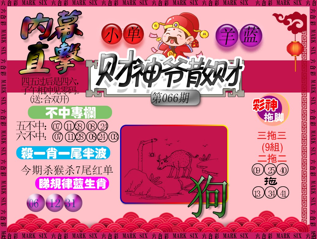 | 066期:《主攻:内幕规律平特肖:<马>下50万》! | ||