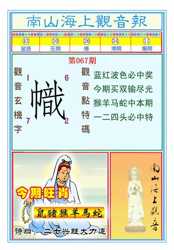 | 064期:(香港挂牌)平一肖【鼠】开:鼠43 |