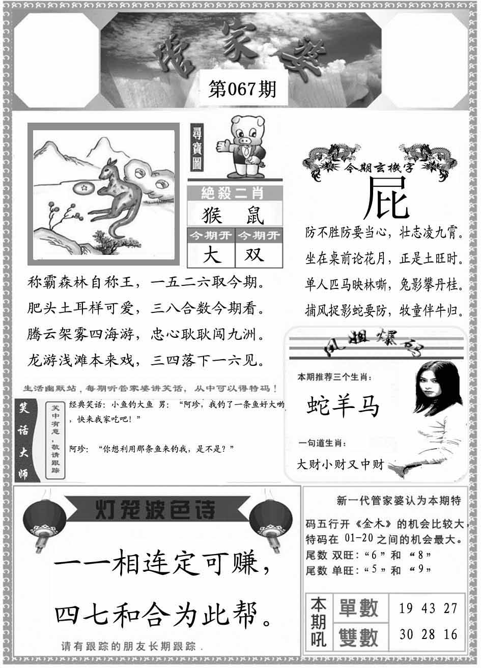 | 064期:神奇七尾【9 2 0 6 7 8 4】开:鼠43 |