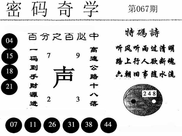 | 049期:神奇七尾【7 8 5 0 3 9 2】开:狗33 |
