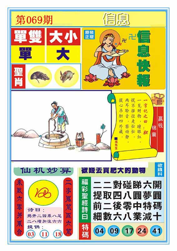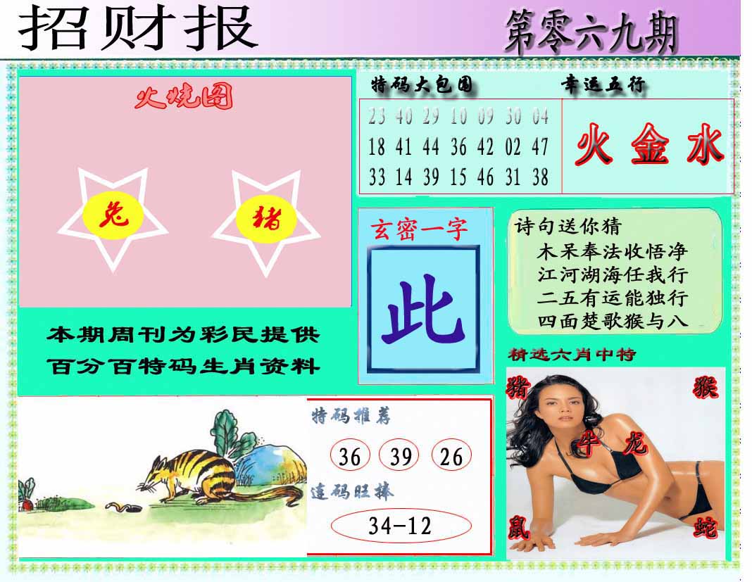 | 064期:精准五不中【23 41 25 34 18】鼠43 |