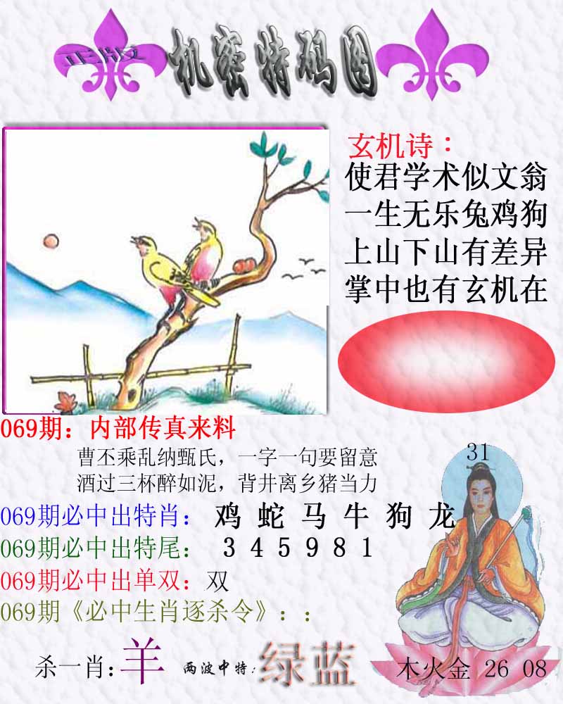 | 055期:神奇七尾【2 0 3 1 6 7 5】开:鸡46 |
