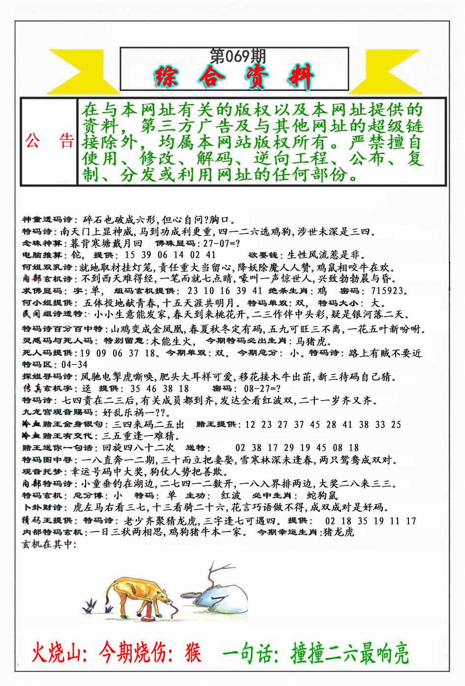 069期推荐六肖:<马虎猪羊龙猴>内幕资料请大胆下注! | ||
