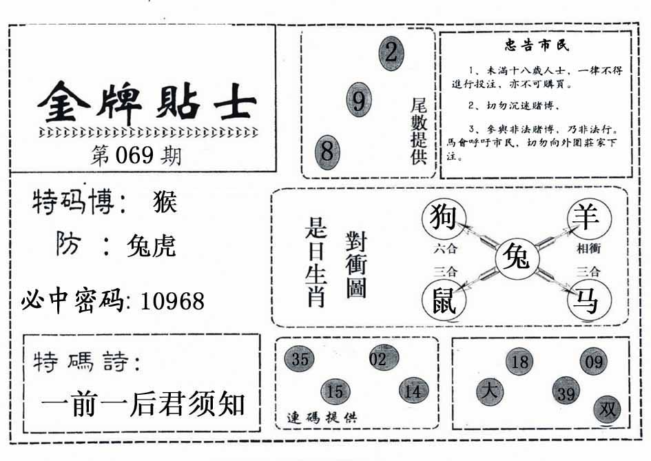 | 068期:神奇七尾【1 7 8 9 6 0 3】开:狗21 |
