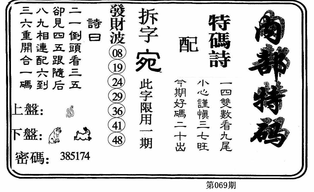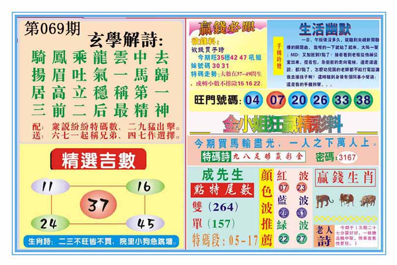 | 069期:《主攻:内幕规律平特肖:<狗>下50万》! | ||