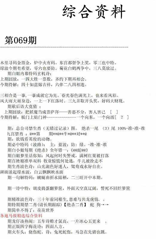 | 069期单双中特[单单单]开?00 |