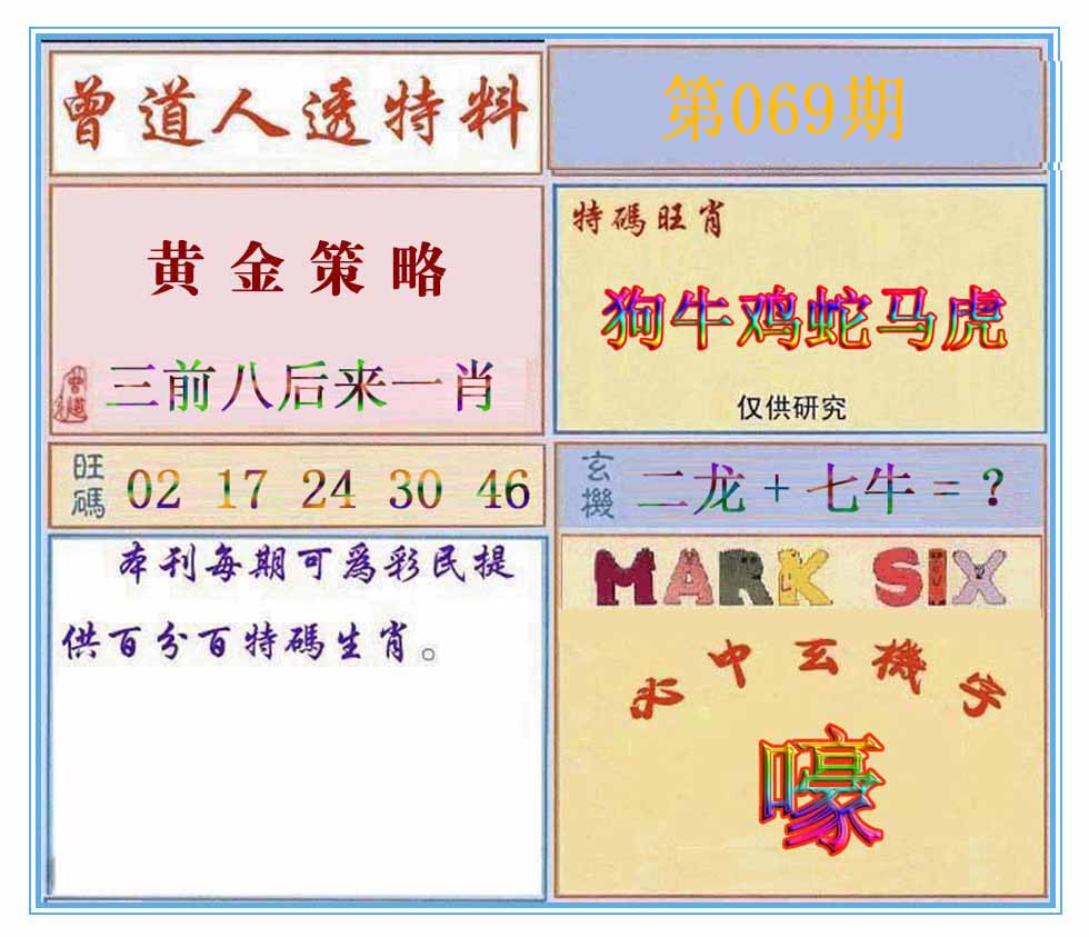 | ⑦肖:鼠蛇兔猪鸡羊马~平均押 | ||