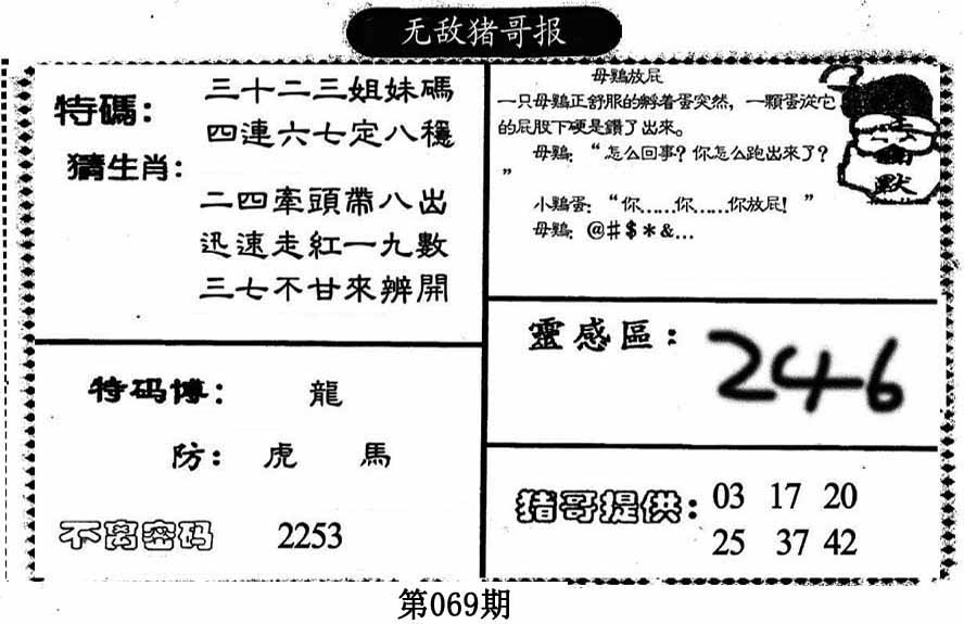 069期原创20码中特开:?00 15,01,42,34,37,18,25,22,10,07 20,40,31,46,14,32,16,06,41,12 |
