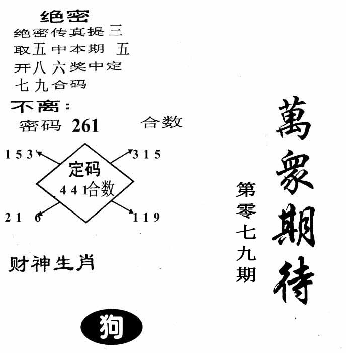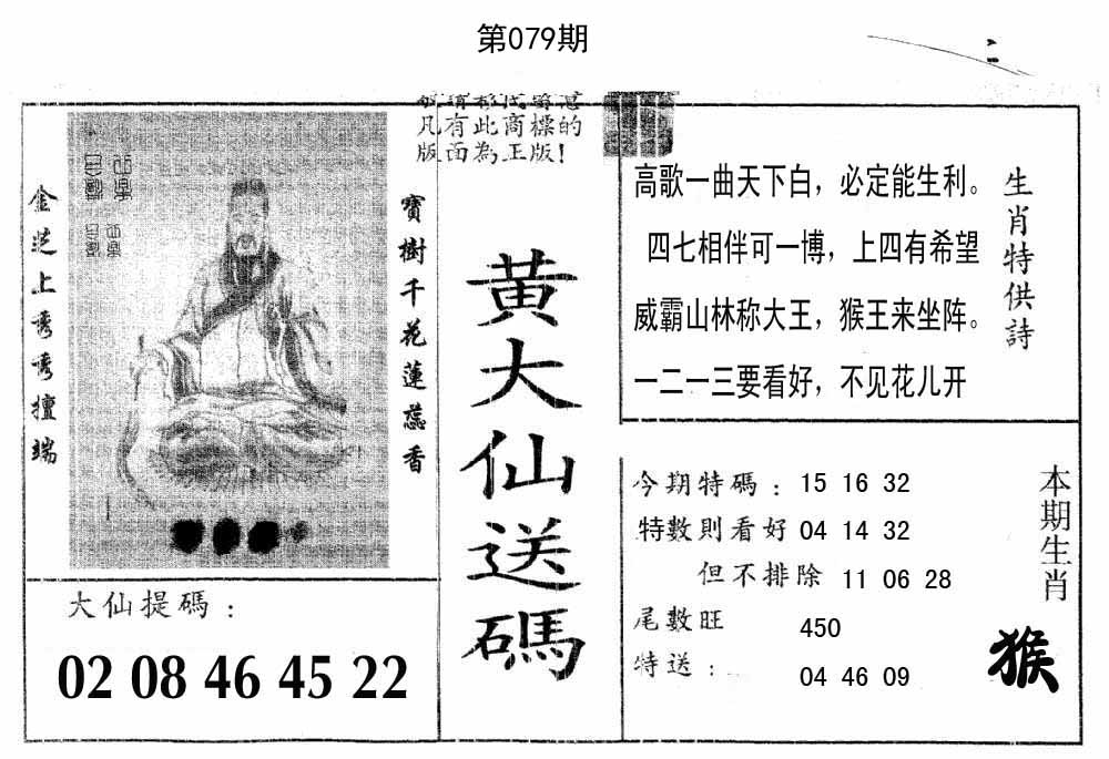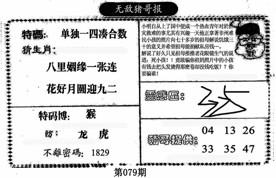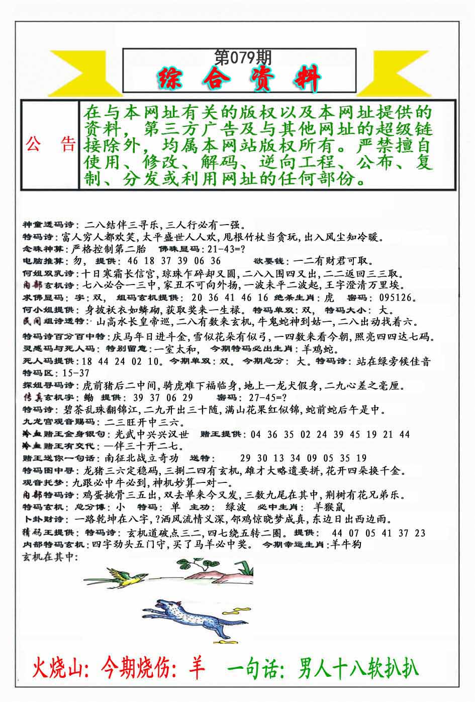 | 079期:《主攻:内幕规律平特肖:<猴>下50万》! | ||