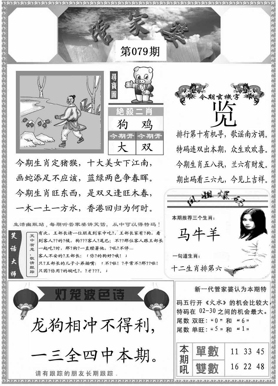 | 079期:(香港挂牌)平一肖【羊】开:?00 |