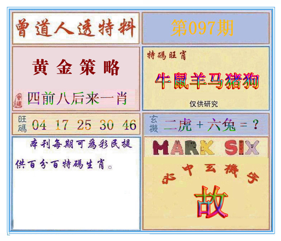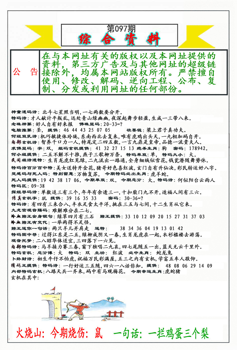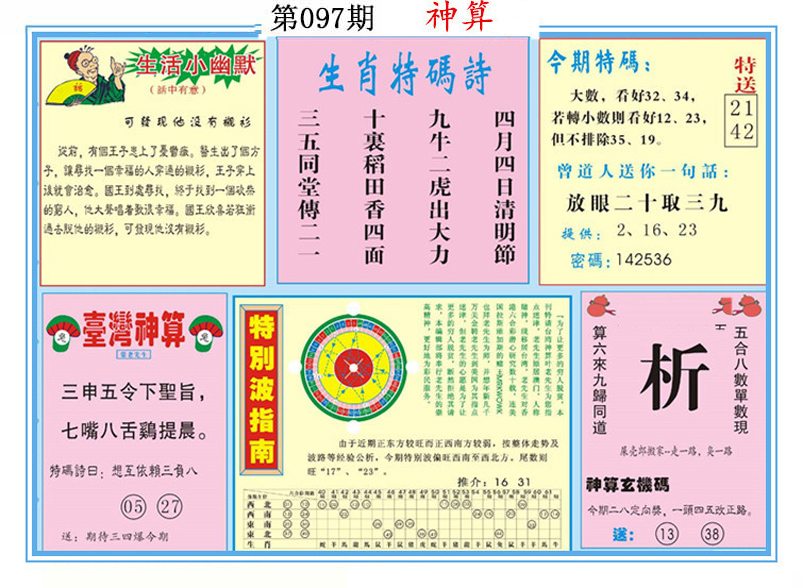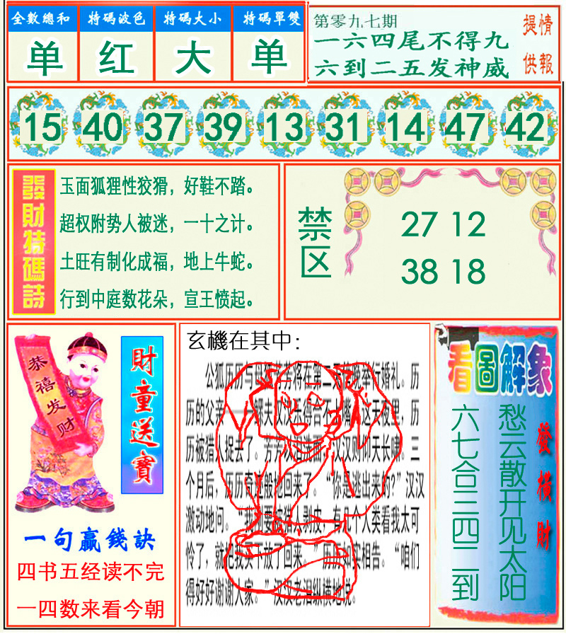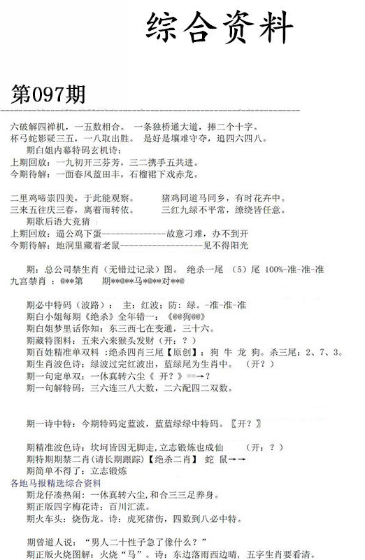 | 097期:《主攻:内幕规律平特肖:<牛>下50万》! | ||