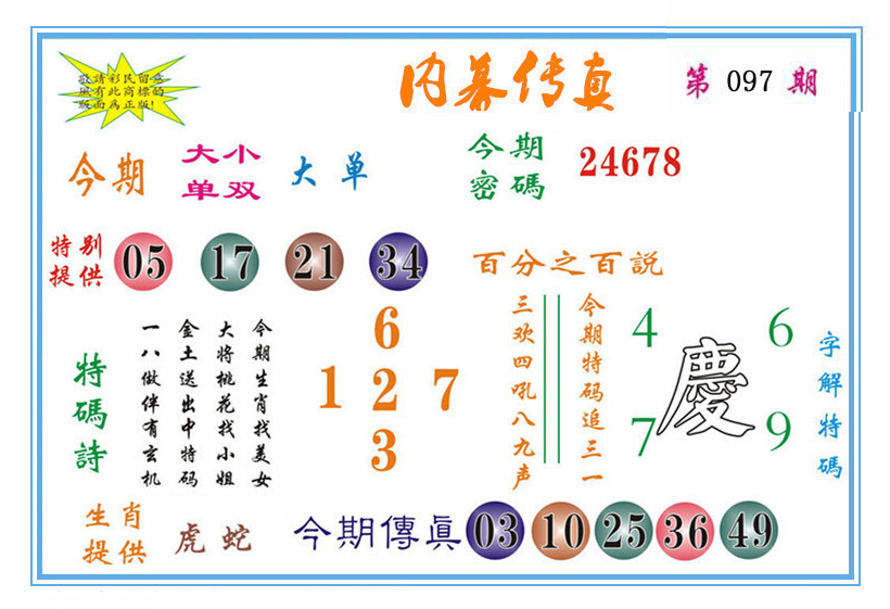 | 097期:开0中 | ||