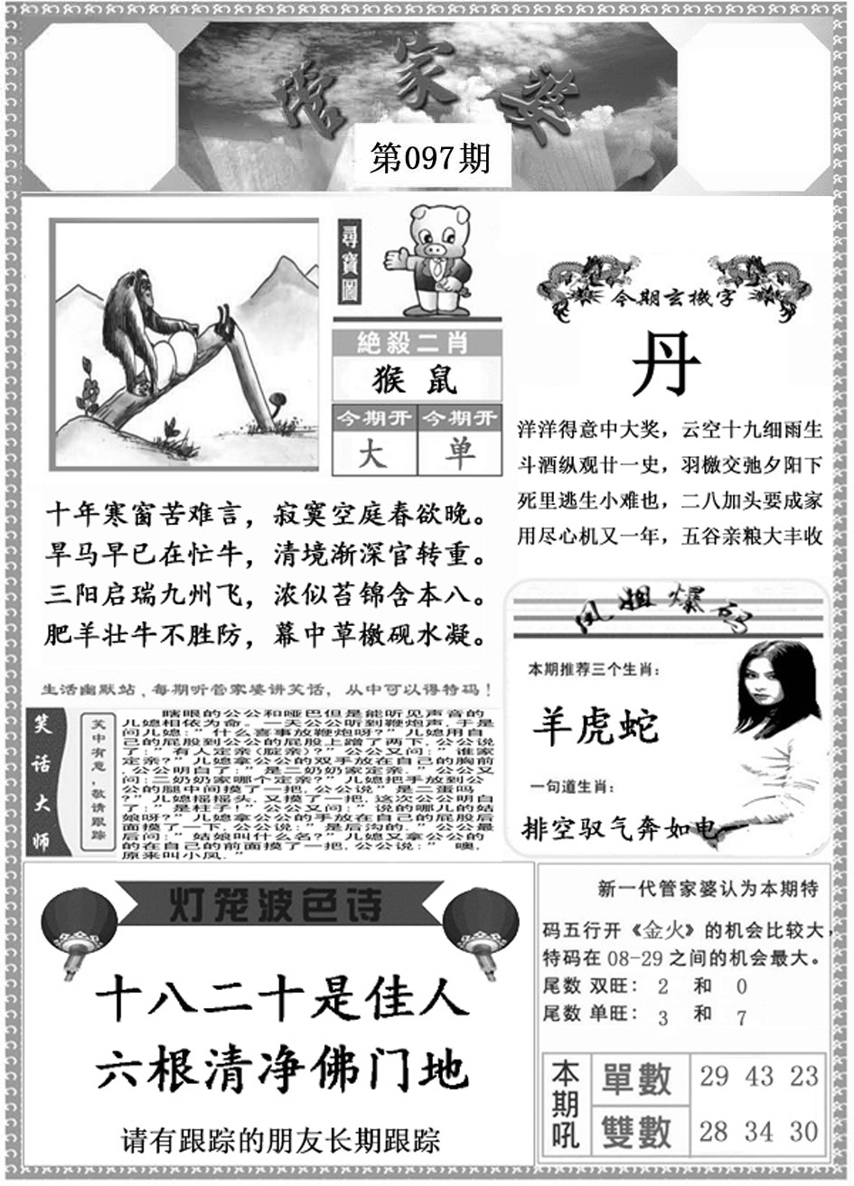 | 097期:(香港挂牌)平一肖【鼠】开:?00 |
