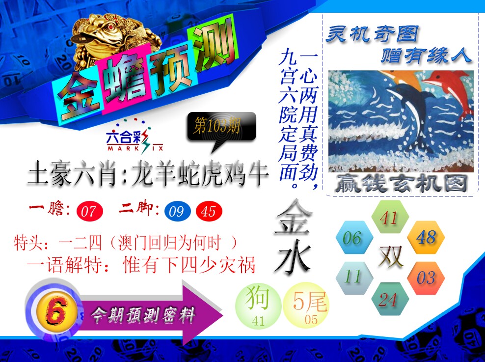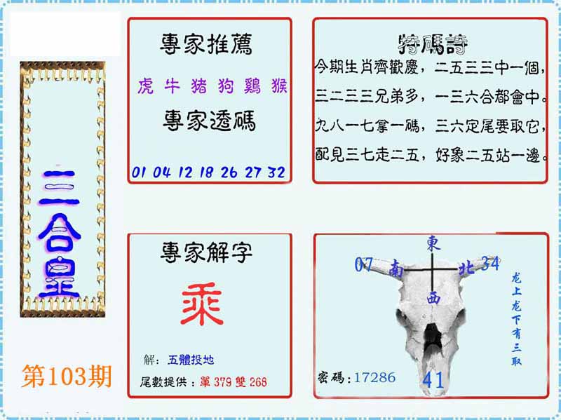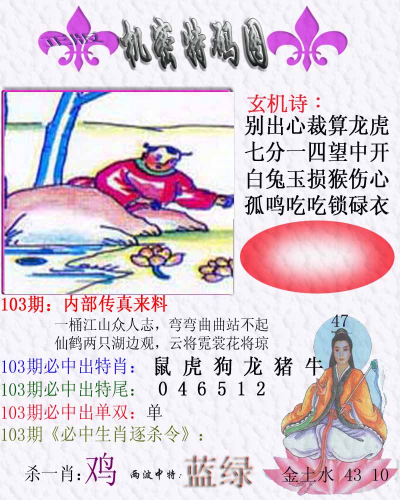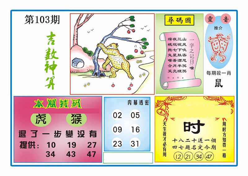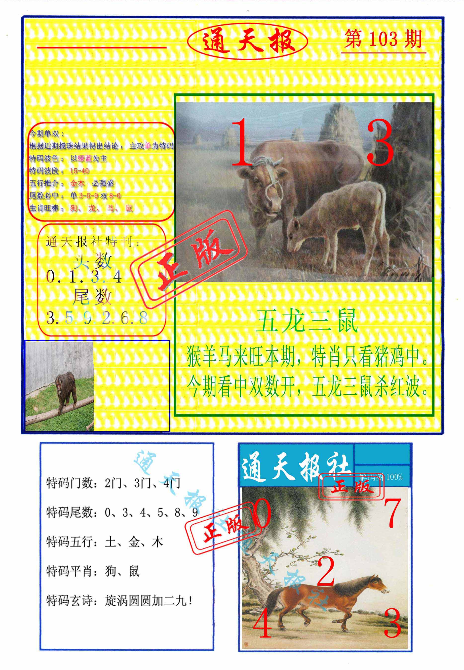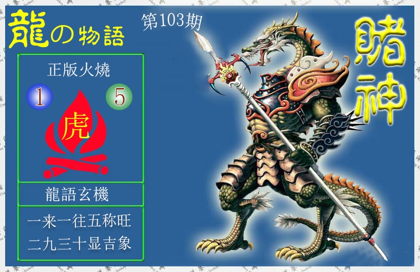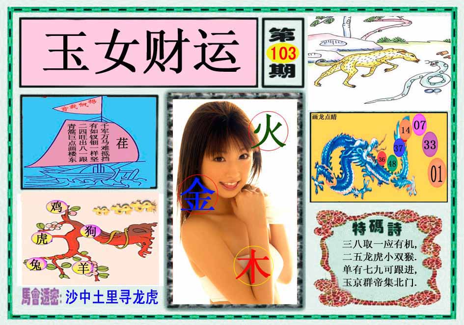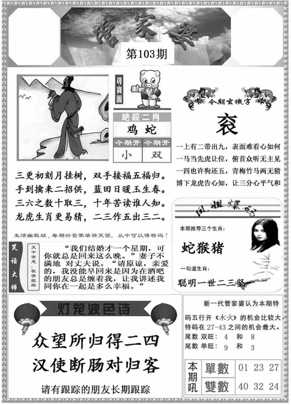 | 103期:《主攻:内幕规律平特肖:<龙>下50万》! | ||
