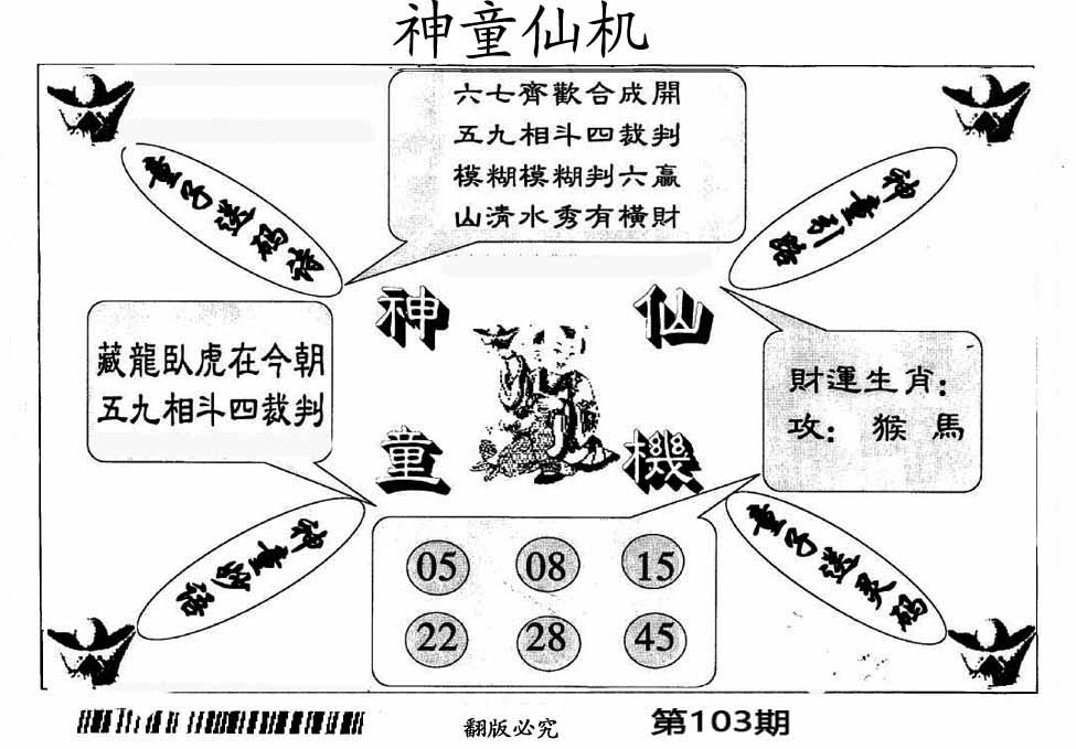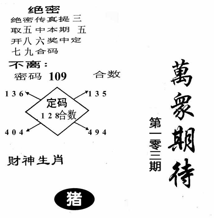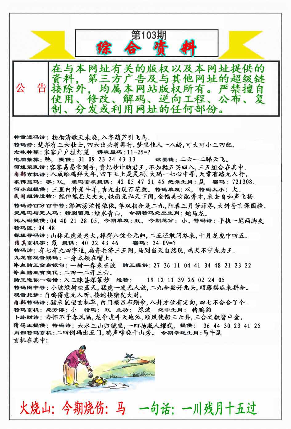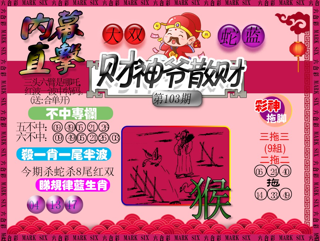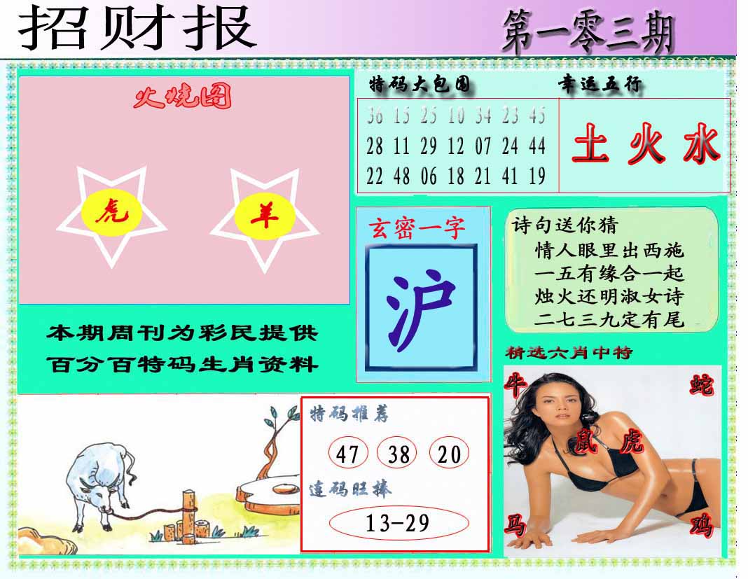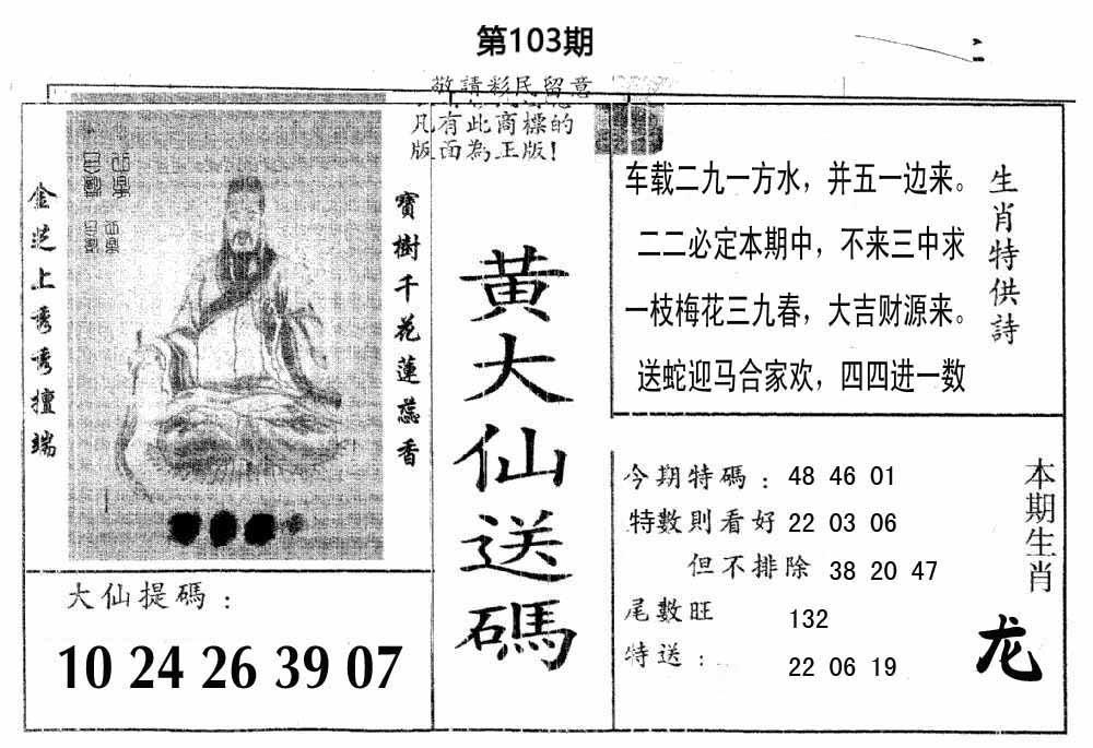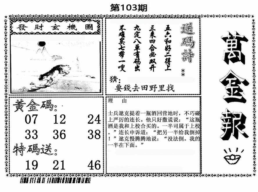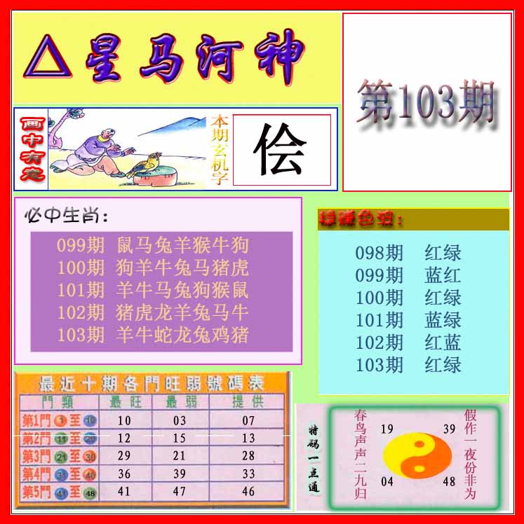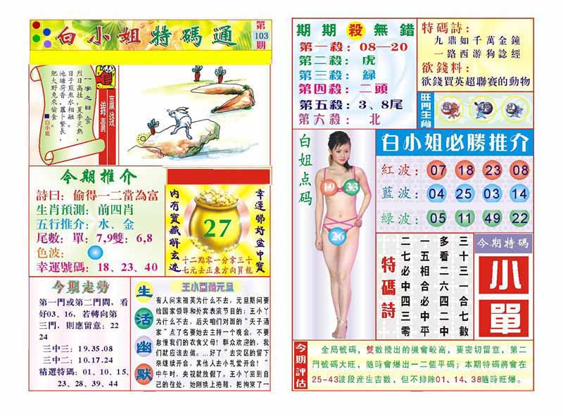 | 103期:《主攻:内幕规律平特肖:<龙>下50万》! | ||