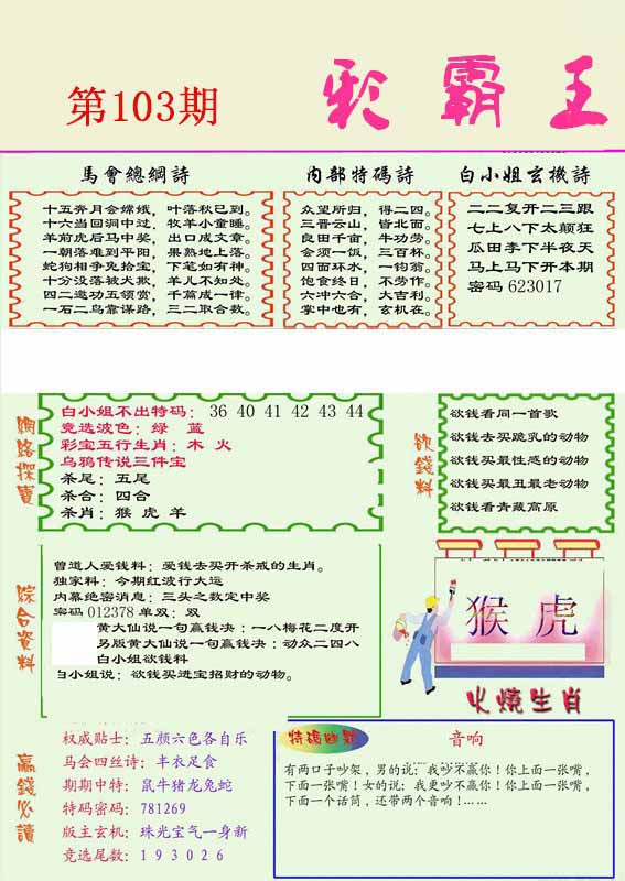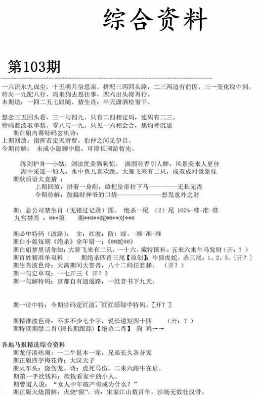 103期推荐六肖:<龙牛马蛇猴虎>内幕资料请大胆下注! | ||