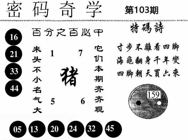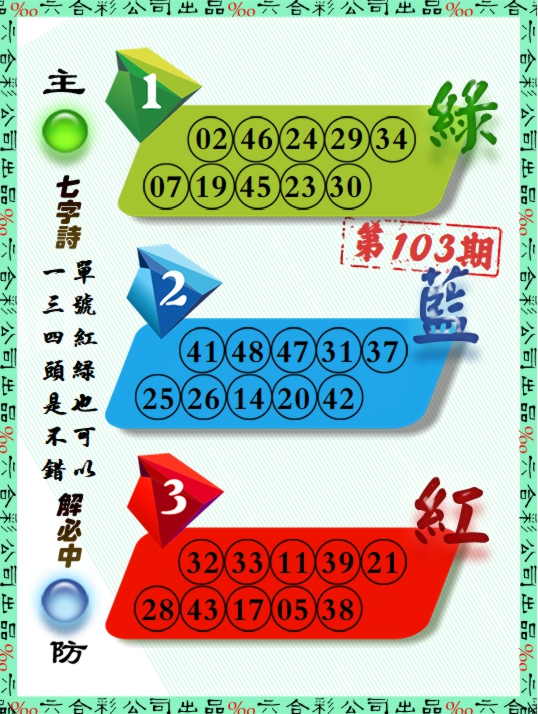 | 103期推荐五码:<06 42 21 20 02>大胆下注十万让你赚百万!