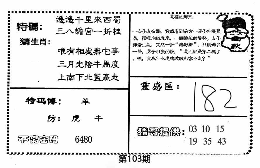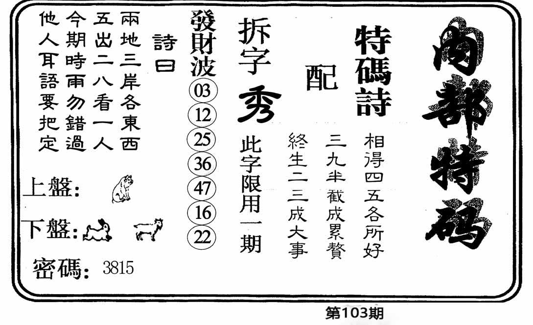 | 103期单双中特[双双双]开?00 |