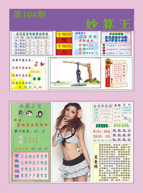 | 106期:精准五不中【06 41 21 24 35】兔04 |