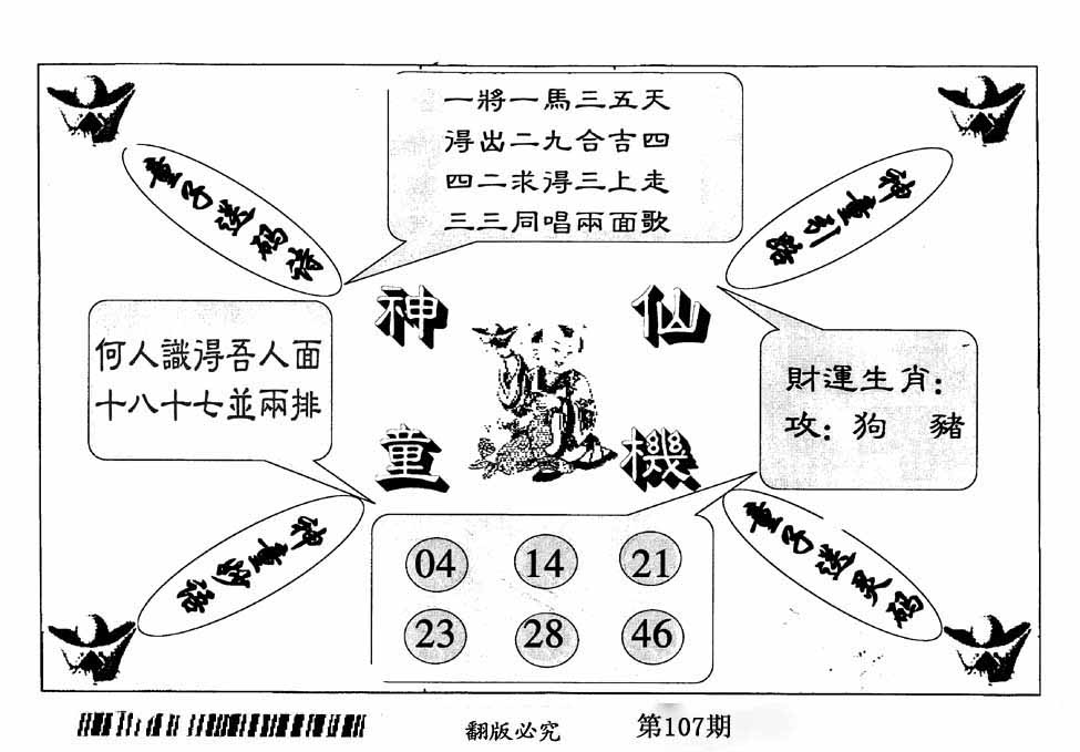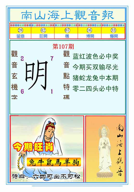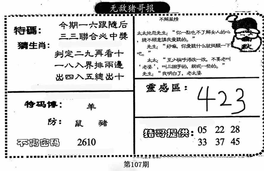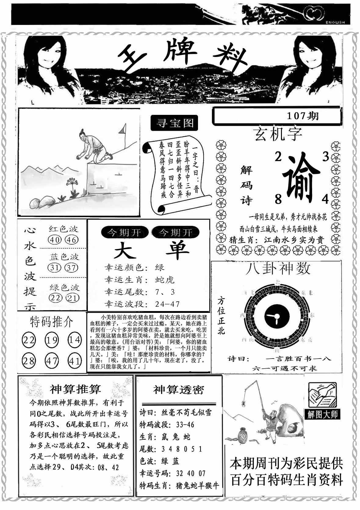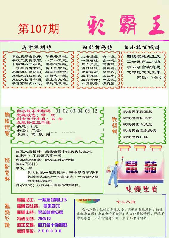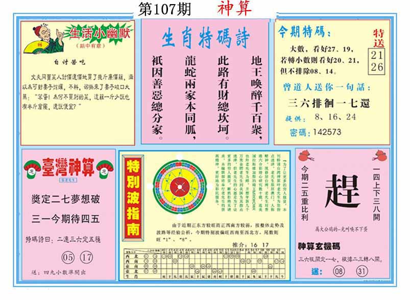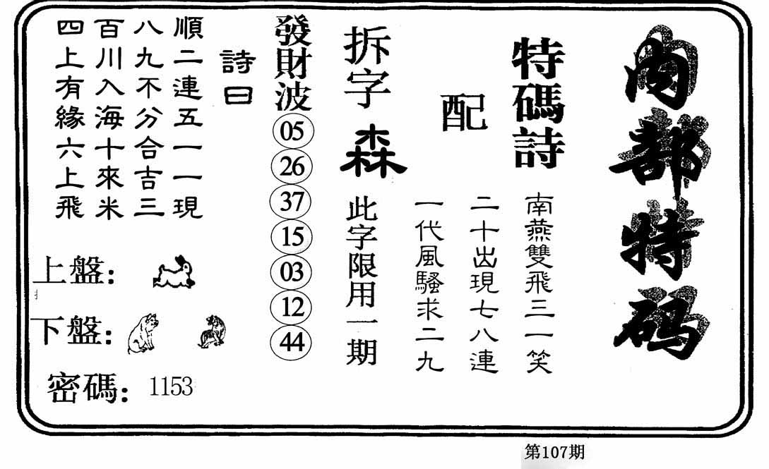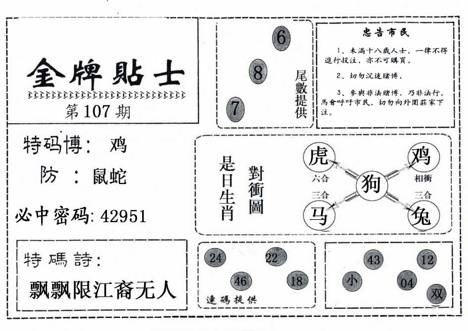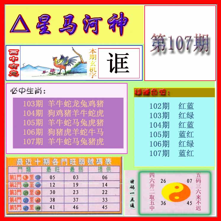 | 107期:《主攻:内幕规律平特肖:<狗>下50万》! | ||