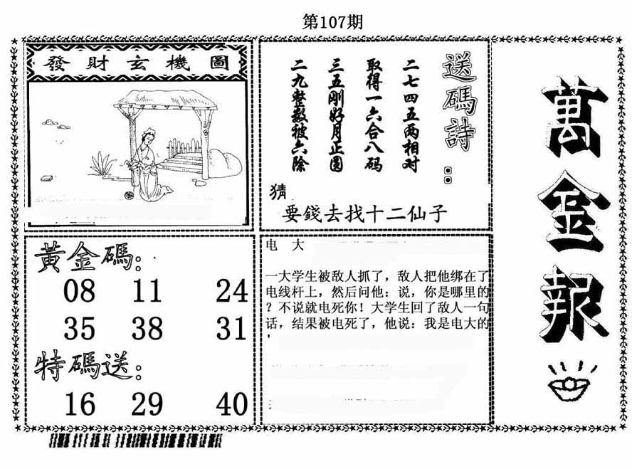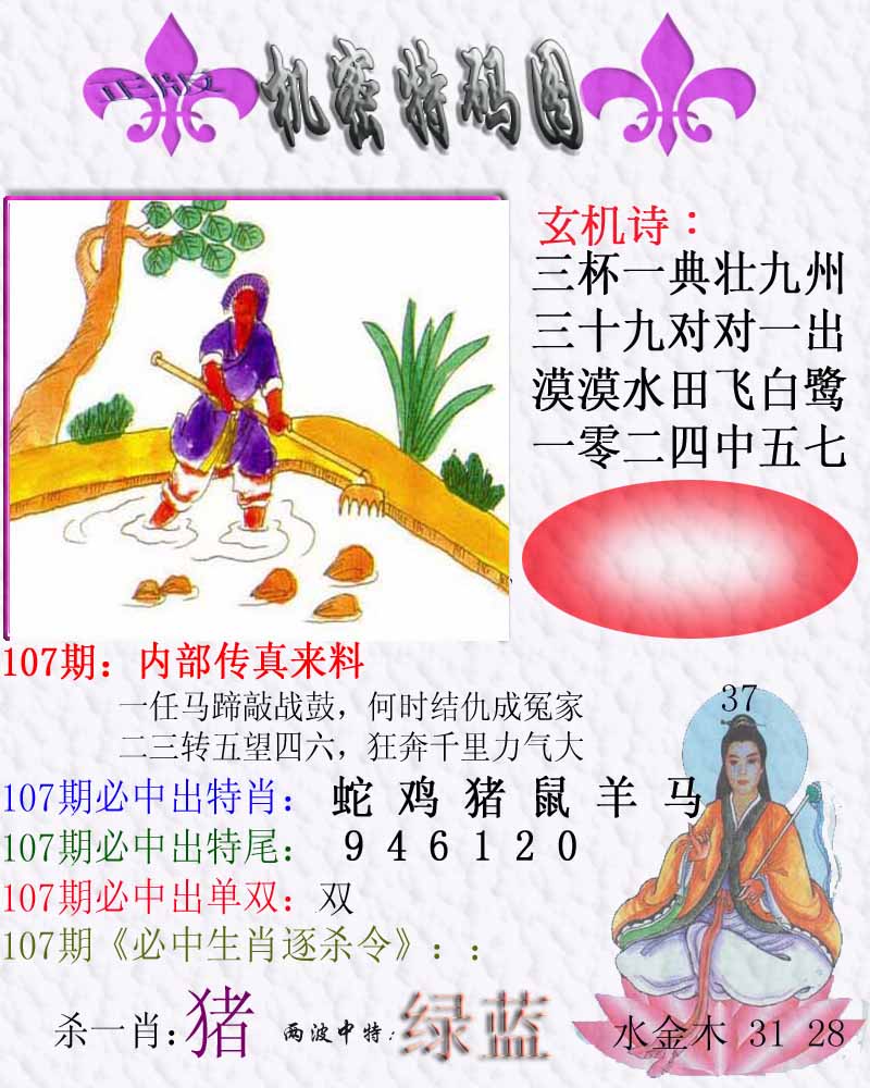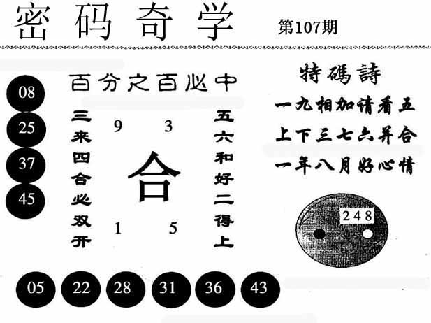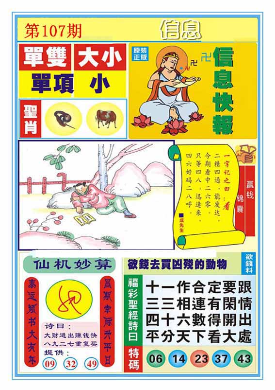 | 107期推荐五码:<09 27 37 31 12>大胆下注十万让你赚百万!