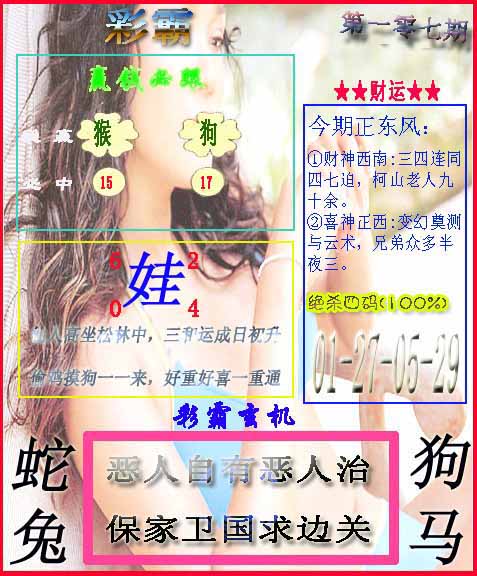 | ⑤肖:马鸡猪虎猴~用力砸 |
