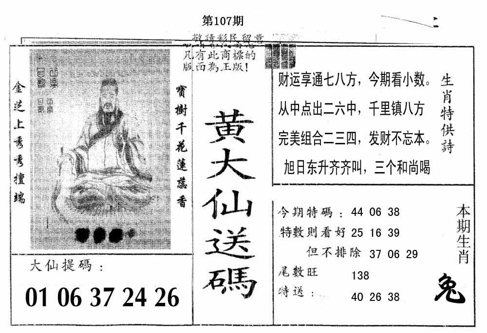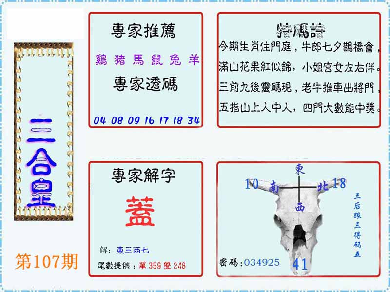 | 107期:(香港挂牌)平一肖【鼠】开:?00 |