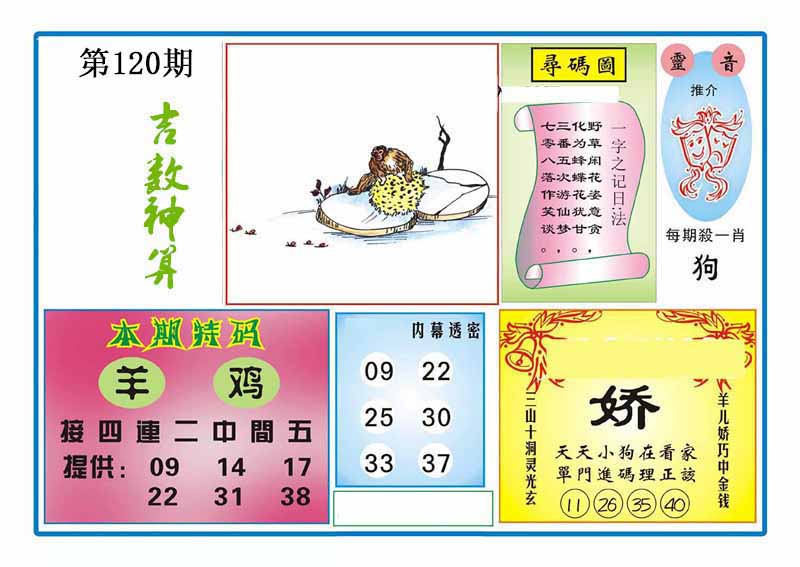 112期:【跑狗九肖】开鸡22 跑狗九肖:猴马龙鸡鼠牛兔猪蛇 跑狗七肖:猴马龙鸡鼠牛兔 跑狗五肖:猴马龙鸡鼠 跑狗三肖:猴马龙 12码:48 09 25 37 44 05 04 39 22 21 19 33 | ||