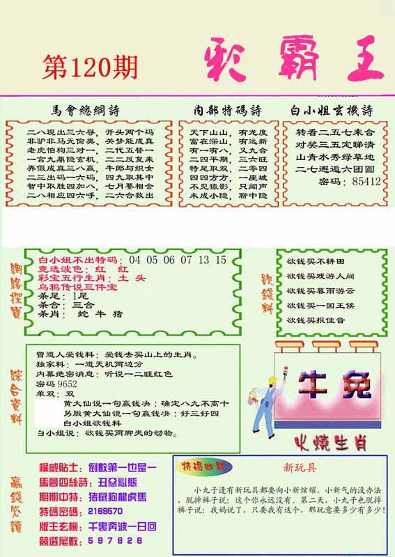 | 119期:《主攻:内幕规律平特肖:<牛>下50万》! | ||