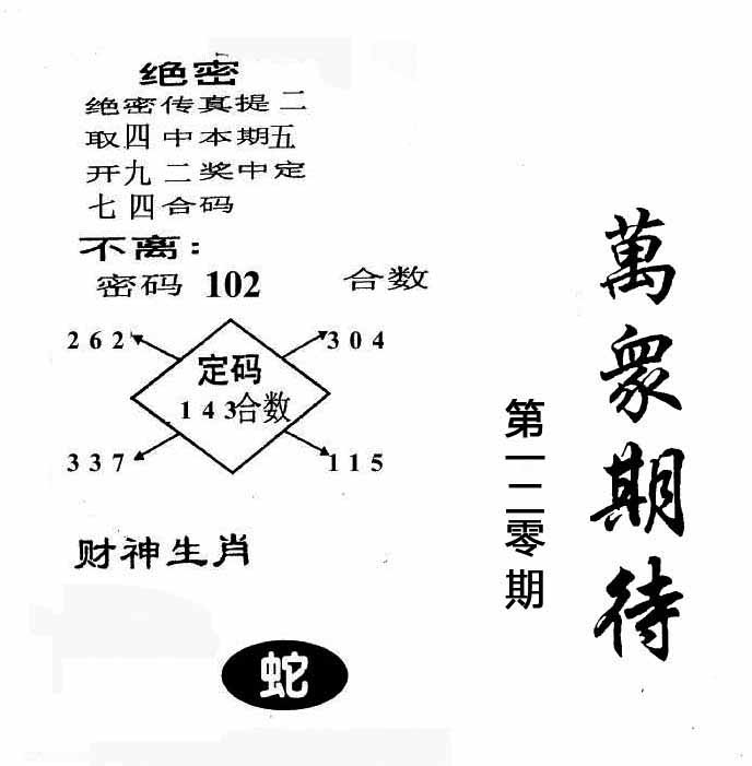 | 107期:精准五不中【30 38 31 01 34】蛇38 |