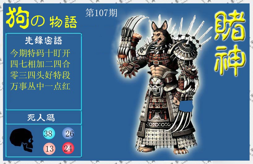 106期:【跑狗九肖】开兔04 跑狗九肖:虎鼠蛇马兔龙羊狗猪 跑狗七肖:虎鼠蛇马兔龙羊 跑狗五肖:虎鼠蛇马兔 跑狗三肖:虎鼠蛇 12码:49 24 42 17 47 09 14 18 12 26 48 33 | ||